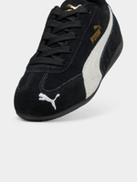 An icon of racing culture, the PUMA Speedcat has been synonymous with speed, precision, and unparalleled performance for over 25 years. Over the decades it found itself on a new circuit – transcending the tracks of Monaco for the streets of global fashion capitals. Kids will stand out in this version featuring a suede upper and bold suede PUMA Formstrip.(Supplier Style:401699 01)
