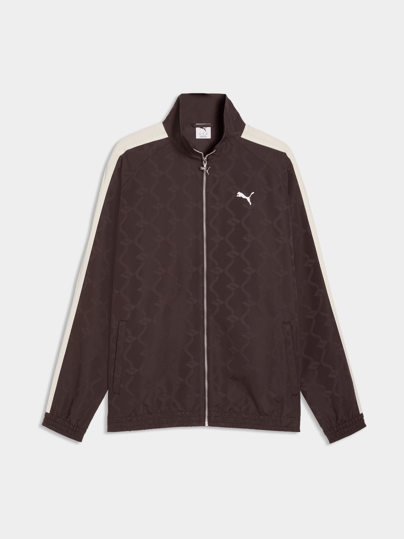 Stay cozy and stylish in this Puma T7 Jacquarded Track Jacket. The brown woven fabric is comfortable and durable, perfect for everyday wear. The relaxed fit allows for easy movement, while the jacquard detailing adds a touch of flair. Ideal for any casual outfit. Supplier code_634398 31