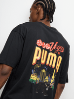 The Puma Vegas Gfx Black T-shirt is crafted from comfortable cotton fabric, perfect for everyday wear. Designed with style and quality in mind, this tee is a versatile addition to any wardrobe. Stay on-trend with Puma. Supplier code_638803 01