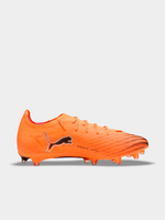 Kick it into sixth gear with the ULTRA 6, now featuring an updated, engineered mesh upper. Perfect for an aspiring pro with a need for (more) speed, this soccer cleat combines PUMA's SPEEDSYSTEM outsole and FastTrax stud design for traction that's miles ahead of the competition. Three rounded studs on the lateral side let you switch seamlessly between firm ground and artificial turf. Wherever you play, play at full throttle.