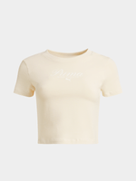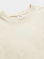 Stay casual and comfy in the Puma Graphic Script Baby Tee in Alpine Snow. Made with a knit fabric, this tee features a stylish graphic script design. Supplier style is (636022 87).