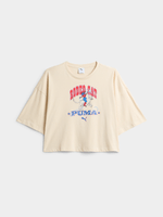 Stay stylish and comfortable in the Puma Women's Rodeo Cat Oversized Short T-shirt. Its relaxed, oversized silhouette ensures freedom of movement, while the ecru tone pairs effortlessly with any outfit. Finished with Puma’s signature Cat logo on the chest, this tee is a versatile addition to your casual or sporty wardrobe. Supplier code_636023 87