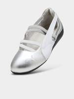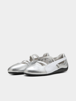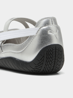An icon of racing culture, the PUMA Speedcat has been synonymous with speed, precision, and unparalleled performance for over 25 years. It originated as a fireproof Formula 1® footwear style, but over the decades it found itself on a new circuit – transcending the tracks of Monaco for the streets of global fashion capitals. Merging ballet elegance with that original racing DNA, the Speedcat Ballet features a metallic upper, embroidered PUMA cat, and elastic bands for a snug fit. Embrace the low-profile trend with this iconic PUMA silhouette.(Supplier Style:40158101)