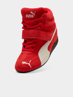 The Speedcat Wedge transforms an icon with a modern twist—featuring a concealed wedge heel and statement velcro straps for elevated style. Crafted in rich suede with metallic accents, this design stands taller while keeping its signature streamlined shape. The Speedcat, reimagined for her.(Supplier Style:408119 02)