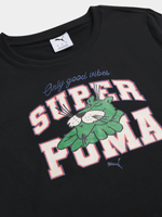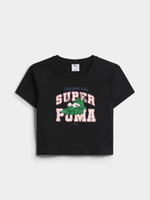 Get your hands on the Puma Graphic Black Baby T-Shirt for a stylish addition to your wardrobe. Made from comfortable cotton fabric with a crew neck and short sleeves, this slim-fit baby tee is perfect for everyday wear. Show off your love for Puma with this must-have tee. Supplier Code_690536 01.