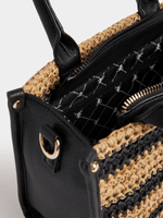 Add the Raffia Striped Coin Purse Mini Tote Bag to your handbag rotation this summer. The structured shape and striped raffia detail feel fresh and light for warm days or nights.