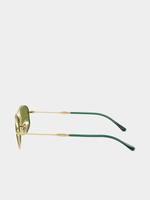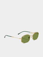 Ray-Ban RB3719 sunglasses are a stylish, oval metal frame with solid green lenses. Perfect for those who want to make a statement, these sunglasses have an arista gold color and polished finish that add an extra touch of elegance to the look. Wear them when you want something that is both timeless and contemporary.