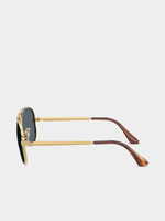 Ray-Ban Aviator Max are a modern twist on the iconic pilot shape. These sunglasses feature a metal arista gold frame with green lenses, for an extra touch of style and attitude. The solid color lenses adds an extra layer of sophistication to these shades, making them perfect for those who want to stand out from the crowd without being too flashy.