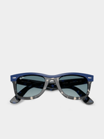 Ray-Ban Wayfarer Street Neat sunglasses are a square shape with a unique style. These acetate frames offer you all the comfort and durability you need in a sunglass, as well as a polished black on transparent color with gradient grey lenses that adds an extra touch of uniqueness to your look. The square shape is perfect for those looking for something new yet familiar at the same time.