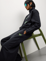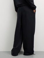 Elevate your look with these Reebok oversized wide leg pants in classic black. Made from a comfortable cotton polyester blend, these pants are perfect for all-day wear. The relaxed fit and wide leg silhouette provide a stylish and trendy touch to any outfit. Supplier style is (100240036).
