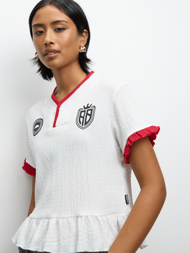 Home/Women/Clothing/Tops & T-shirts/Redbat Athletics Women's Fitted Soccer White Top
