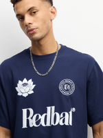 Introducing the Redbat Athletics crew neckline t-shirt in a stylish navy hue. Crafted from comfortable cotton fabric with a relaxed fit, this graphic tee is perfect for everyday wear. Show off your athletic style with this versatile staple.