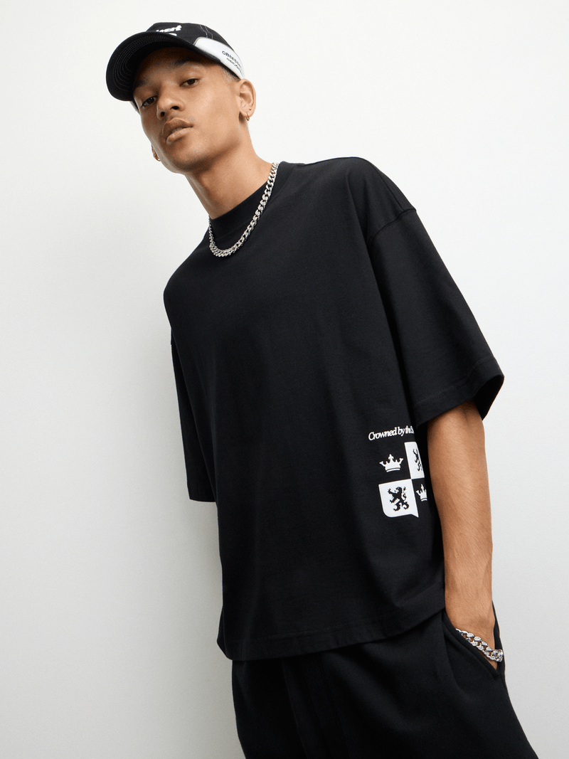 The Redbat Athletics Men's Black Oversized Clean Crest T-Shirt is made from lightweight and breathable cotton in a classic crew neck style with short sleeves and a baggy, oversized fit. A crest graphic on the chest and across the back completes the style. Redbat is exclusive to Sportscene.