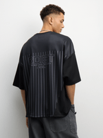 The Redbat Athletics black t-shirt features a crew silhouette made from polyester fabric. With a rubber badging design, this top offers an oversized fit and a classic crew neckline for a comfortable feel. Perfect for casual wear or workouts, it's a versatile addition to your wardrobe.