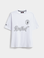The Redbat Athletics White T-Shirt is a must-have for your casual wardrobe. Made of soft cotton, it features a classic crew neckline for a comfortable fit. Perfect for everyday wear, this tee is versatile and easy to style. Upgrade your look with the White Eagle Badge Applique on the chest.