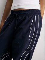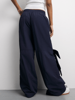Elevate your athleisure game with these blue pants from Redbat Athletics. Made from soft nylon, these wide-leg pants feature a charming bow detail. Perfect for adding a sporty-chic touch to your wardrobe. Stay stylish and comfortable all day long.