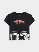Defy the odds in style with this Redbat Athletics baby doll t-shirt. Made from comfortable cotton fabric. Perfect for everyday wear, this black tee is a must-have addition to your wardrobe. Get yours today and rock that casual cool look effortlessly.