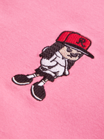 Get your game on with the Redbat Athletics pink tee featuring an embroidered dog mascot. Made from cozy cotton, this tee is perfect for casual days out. Comfortable and versatile, it's a must-have addition to your wardrobe. Stand out in style with this fun and vibrant t-shirt.
