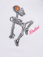 Elevate your athleisure game with the Redbat Athletics White T-Shirt. Made from comfortable cotton fabric, this tee features a stylish skeleton basketball design. Perfect for workouts or casual wear. Embrace sporty chic vibes with this versatile wardrobe staple.