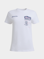 Elevate your athleisure wardrobe with this Redbat Athletics white tee. Made from soft cotton, it features a stacked logo and loaded strength badge for a standout look. Designed with a regular fit, this tee is perfect for everyday wear. Ready to rock your casual style!