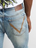 Introducing Redbat's AMG Light Blue Super Skinny Jeans. Made from high-quality denim, these jeans offer a sleek and stylish look. Perfect for any casual outing or night out on the town. Embrace your unique style with these comfortable and fashionable jeans.