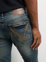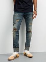 Elevate your style with these Redbat super skinny dark blue jeans. Made from premium denim fabric, these jeans offer a sleek and trendy look. Perfect for any occasion, these jeans are a must-have for your wardrobe. Find your perfect fit and rock these jeans with confidence.