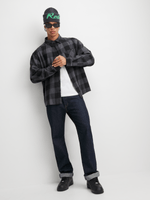 Stay stylish in this Redbat black check shirt. Made from cozy flannel fabric, it offers a relaxed fit for all-day comfort. This shirt is perfect for casual outings or lounging at home. With its classic design, you can easily pair it with your favorite bottoms for a versatile look. Make a statement with this wardrobe essential.