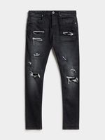 These Redbat Men's Black Wash Super Skinny Jeans are made from cotton-blend denim with stretch for comfort. They have a classic five-pocket denim design, rip and repair detail and fading on the legs with contrast stitching on the back pockets. Redbat branded patch on the back waistband. Redbat is available exclusively at sportscene.