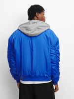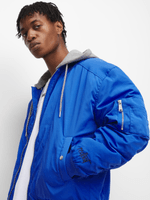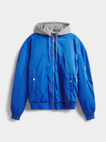Stay cozy and stylish with our Blue Hooded Bomber Jacket. Made from durable nylon fabric to keep you warm and comfortable. This jacket is perfect for everyday wear with its versatile design. Plus, it's easy to mix and match with any outfit. With its true-to-size fit, you'll love wearing it all day long. Let this jacket be your go-to outerwear this season.