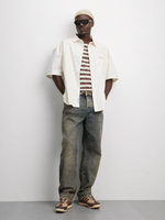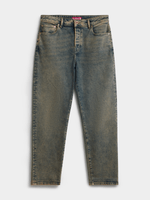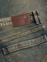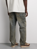 Introducing the Redbat men's blue tea stain wide leg jeans, crafted from quality denim for a comfortable fit. These stylish pants feature a wide leg shape for a trendy look. Perfect for everyday wear, these jeans are sure to become a wardrobe staple.