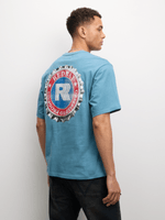 Introducing the Redbat men's bottle cap graphic blue t-shirt, featuring a comfortable cotton crew silhouette. This relaxed fit tee is perfect for everyday wear. Stand out with the unique bottle cap graphic design. Crafted for style and comfort.