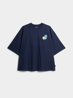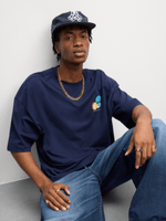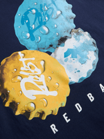 Step up your casual style with this Redbat navy graphic t-shirt. Made from soft cotton, it features a crew silhouette and oversized fit for ultimate comfort. Rock the cool bottle cap design for a laid-back look that stands out. Perfect for everyday wear.