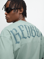 Get ready to rock the urban look with this Redbat green distressed t-shirt. Made from comfortable cotton, it features a unique neckline branding for a stylish touch. Perfect for effortless street style, this tee is a must-have addition to your wardrobe.