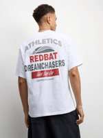 Elevate your casual style with the Redbat Men's Dreamchasers Graphic White T-Shirt. Made from soft cotton, this crew neck tee offers a relaxed fit for all-day comfort. Embrace your dreams in style with this versatile wardrobe essential.