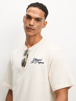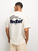 Elevate your casual look with this Redbat Athletics Flock Flag Graphic T-shirt in ecru. Crafted with soft cotton fabric, it features a crew silhouette and relaxed fit for all-day comfort. Show your style with the striking flag graphic on the front.