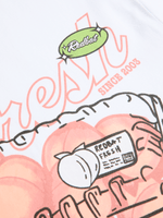 Introducing the Redbat Fresh & Juicy Graphic White T-Shirt. Embrace the season with its relaxed fit and comfortable cotton fabric. Stand out with the 'Fresh & Juicy' graphic. Perfect for everyday wear. Add a pop of fun to your wardrobe!