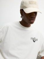 Introducing the Redbat men's Ecru T-shirt with a cool 'Jewellery' graphic. Crafted from soft cotton fabric with a relaxed fit and crew neckline for everyday comfort. Stand out in style with this unique piece that's perfect for any casual occasion.