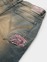 Introducing our Redbat cotton denim jorts in a relaxed fit, perfect for everyday wear. These men's medium blue shorts are a versatile addition to your wardrobe. Designed for comfort and style, they feature stain embroidery detail. Enjoy the convenience of being able to return if needed.