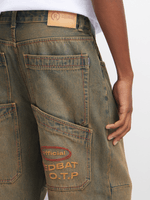 Step out in style with Redbat's Muddy Blue Stain Baggy Carpenter Jeans. Made from comfortable denim fabric and featuring a wide leg shape, these jeans are perfect for any casual occasion. Embrace your unique style with this trendy and versatile pair of jeans.