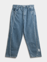 Step out in style with our Redbat Piped Baggy Wide Leg Jeans in Medium Blue. Made from comfortable cotton fabric, these jeans feature a relaxed baggy fit. Perfect for a casual and laid-back look. Stand out from the crowd with these on-trend wide leg pants.