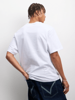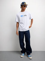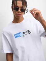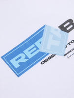Introducing the Redbat Stickers Graphic T-Shirt in white. This shirt features a relaxed fit and a crew neckline for ultimate comfort. Made of soft cotton fabric, this tee is perfect for everyday wear. Stand out with the unique sticker graphic design. Refresh your wardrobe with this versatile piece.
