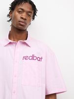 Introducing the Redbat Stripe Crop Pink Shirt! Made from a comfortable cotton blend fabric, this stylish shirt features a graphic design and trendy crop silhouette. Perfect for casual days out or hanging with friends. Upgrade your wardrobe with this must-have piece.