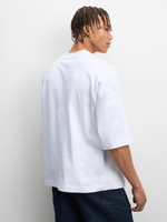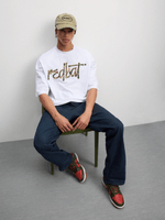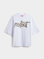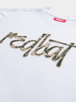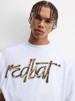 Elevate your wardrobe with this Redbat white boxy t-shirt. Crafted with a crew neckline and cozy fleece fabric, this tee is the perfect blend of comfort and style. The unique camo applique adds a touch of flair to a classic silhouette. Perfect for everyday wear and easy to mix and match.
