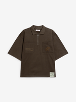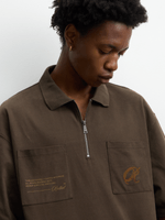 Stay cozy in style with our Redbat zip polo shirt. Oversized for a relaxed fit, this brown top is perfect for any occasion. Made from comfortable cotton, this golfer silhouette shirt features a classic collar neckline. Upgrade your wardrobe effortlessly with this versatile piece.