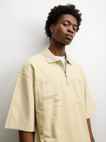 Introducing our Redbat Classics Silhouette Golfer Cotton Zip Polo Shirt in Ecru. This oversized, boxy top features a stylish collar neckline. Made from high-quality cotton for ultimate comfort. Perfect for a relaxed and casual look. Enjoy the easy to style versatility of this wardrobe essential.