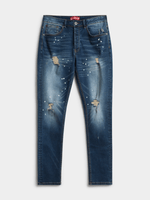 Step out in style with the Redbat splatter dark blue skinny jeans. Made from quality denim, these super skinny jeans are a wardrobe essential for anyone looking to stand out. Perfect for casual outings or dressing up, these jeans are a must-have for those who appreciate style and comfort.