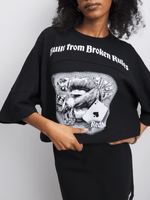 Introducing the Redbat black oversized cropped top made from cozy waffle fleece fabric. This relaxed fit tee features stylish cutlines for a trendy look. Versatile and comfortable, this top is a must-have addition to your wardrobe. Ideal for everyday wear, it's perfect for creating effortless and cool outfits.