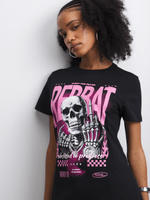 Get the Redbat black t-shirt that stands out with a skeleton design giving a nod to rebellious style. Made of soft cotton for comfort, this tee boasts a regular fit that's easy to wear. Embrace your edge with this statement piece that brings a touch of attitude to any outfit.