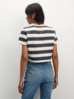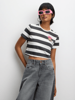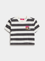 Elevate your style with the Redbat Women's Cropped Top in Charcoal/Ecru. Made from cotton, this short sleeve top is a must-have for trendy wardrobes. Enjoy the comfortable fit and versatile stripe design. Perfect for everyday wear and easy to mix and match. Add a touch of casual chic to your outfit effortlessly!