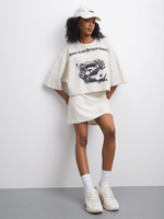 Introducing the Redbat cream waffle fleece oversized crop tee with cutlines. Made from comfy cotton, this relaxed-fit top is a wardrobe essential. Pair it with your favorite bottoms for a laid-back look. Easy to style and perfect for everyday wear.